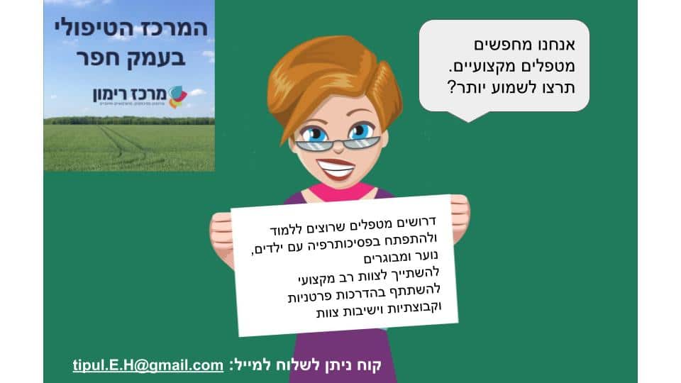 אתם מטפלים מאזור עמק חפר? בעלי מקצוע טיפולי מוכר וניסיון בטיפול במתבגרים, טיפול רגשי בילדים, טיפול במבוגרים או משפחות?